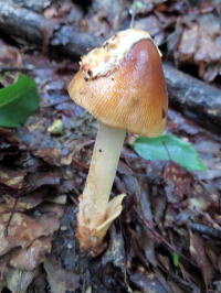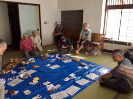 今年の夏季観察会は猿ヶ京温泉 千の谷を宿として行われた。今年の夏は猛暑が続き、西日本の豪雨災害と裏腹に雨は台風頼みの状況である。前日に東秩父を偵察してきたがアカジコウのみ数本出てはいたものの、あとは数種の硬いキノコしかない状態で、多分あんまり取れないだろうと覚悟はしていた。しかし実際山に入ってみると予想を上回る少なさである。それでも、なんとか往路数か所で十種程度採集して宿へ向かい、鑑定会場を設営し、一段落して温泉に入ることにしたのだが、ここでひと騒動起きた。大久保氏の足が血だらけである。いつの間にかヤマビルにやられていたのである。その話をしながら藤野氏の足をみるとこれも血だらけである。慌てて車に戻り、長靴の中やシートの下やカーペットの下を探したが見つけることはできなかった。既に隙間から車外に逃げ出していることを願うばかりである。下見の時にヤマビルがいることは聞いていたので、かなり注意して探していたのだが、見つけることができなかった。まあ、生息密度はそんなに高くないのだろうと高を括っていたのだが、見事に隙を突かれた形である。そんなこやはあったものの、温泉で疲れをとり、夕食で一杯やればきのこ談義に花が咲き、楽しい時間を過ごすことができた。翌日は朝食後に福島会長に講評をして頂いたのだが、ともかくキノコの種類が少ないので大変だったようである。宿で散会した後、一応一か所位はということで群馬21世紀の森によってみた。結果は悲惨なものであった。別な場所にトライする気持ちにもなれず、早々に帰途についた。今年の夏季観察会は猿ヶ京温泉 千の谷を宿として行われた。今年の夏は猛暑が続き、西日本の豪雨災害と裏腹に雨は台風頼みの状況である。前日に東秩父を偵察してきたがアカジコウのみ数本出てはいたものの、あとは数種の硬いキノコしかない状態で、多分あんまり取れないだろうと覚悟はしていた。しかし実際山に入ってみると予想を上回る少なさである。それでも、なんとか往路数か所で十種程度採集して宿へ向かい、鑑定会場を設営し、一段落して温泉に入ることにしたのだが、ここでひと騒動起きた。大久保氏の足が血だらけである。いつの間にかヤマビルにやられていたのである。その話をしながら藤野氏の足をみるとこれも血だらけである。慌てて車に戻り、長靴の中やシートの下やカーペットの下を探したが見つけることはできなかった。既に隙間から車外に逃げ出していることを願うばかりである。下見の時にヤマビルがいることは聞いていたので、かなり注意して探していたのだが、見つけることができなかった。まあ、生息密度はそんなに高くないのだろうと高を括っていたのだが、見事に隙を突かれた形である。そんなこやはあったものの、温泉で疲れをとり、夕食で一杯やればきのこ談義に花が咲き、楽しい時間を過ごすことができた。翌日は朝食後に福島会長に講評をして頂いたのだが、ともかくキノコの種類が少ないので大変だったようである。宿で散会した後、一応一か所位はということで群馬21世紀の森によってみた。結果は悲惨なものであった。別な場所にトライする気持ちにもなれず、早々に帰途についた。