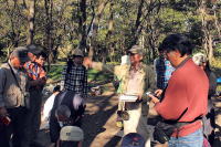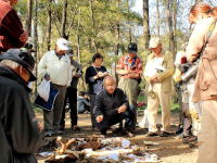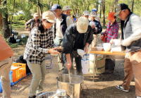 きのこ汁を楽しむ皆さんきのこ汁を楽しむ皆さん福島会長によるきのこの解説 きのこの解説をする西田さん