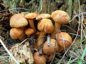 **ヒラタケ科**ヒラタケ科ヒラタケ属:ヒラタケ**スエヒロタケ科**スエヒロタケ科スエヒロタケ属:スエヒロタケ**ヒドナンギウム科**ヒドナンギウム科 キツネタケ属:カレバキツネタケ**キシメジ科**キシメジ科 ハイイロシメジ属:アカチャイヌシメジ**ツキヨタケ科**ツキヨタケ科モリノカレバタケ属:モリノカレバタケ属33種、 アマタケモドキ(池田仮称)シロホウライタケ属 カミホウライタケ(青木仮称)**タマバリタケ科**タマバリタケ科ツエタケ属:ツエタケの仲間33種**ラッシタケ科**ラッシタケ科 クヌギタケ属:クヌギタケの仲間**ホウライタケ科**ホウライタケ科ホウライタケ属:オオホウライタケ、 カミホウライタケ((青木実仮称))、 **ガマノホタケ科**ガマノホタケ科 ヒメカバイロタケ属:ヒメカバイロタケ**テングタケ科**テングタケ科 テングタケ属:ヒメコガネツルタケ、フクロツルタケ、ウスキテングタケ?**ウラベニガサ科**ウラベニガサ科ウラベニガサ属:ウラベニガサ、ベニヒダタケ**ハラタケ科**ハラタケ科キツネノカラカサ属:キツネノカラカサ(近縁種)ホコリタケ属:ホコリタケ**ナヨタケ科**ナヨタケ科 キララタケ属:イヌセンボンタケ、コキララタケ ナヨタケ属:イタチタケ**モエギタケ科**モエギタケ科 スギタケ属:ヤケアトツムタケセンボンイチメガサ属:センボンイチメガサ ニガクリタケ属:ニガクリタケ**アセタケ科**アセタケ科 アセタケ属:シラゲアセタケ チャヒラタケ属:クリゲノチャヒラタケ**イッポンシメジ科**イッポンシメジ科ヒカゲウラベニタケ属:ヒカゲウラベニタケ