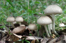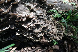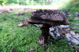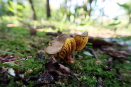 **キノコ観察会報告**キノコ観察会報告コロナ禍である為、群馬の森観察会の入場・受付手続き等が気掛かりであったので電話で確認を22度行った。対応する人により話の内容が異なるため、当日守衛室で話をよく聞いたところ、特別な受付手続きをする事もなく入場することが出来た。受付時間まで11時間ほど時間が有ったので、南口から入りクロマツ、マテバシイ、クヌギ、イロハカエデ、シラカシ等の樹下を散策して見た。テングタケ、ヤマドリタケモドキ、クロハツ、アセタケ属、オオミノコフキタケ、等が見られた。近代美術館前の芝生広場も見たが、芝生に生えるきのこ達の姿は無かった。受付時間に成ったので北口に移動し、受付で念のため皆さんの体温を測定し、栗原さんが準備してくれたネームプレイトをして再び南口から近代美術館の裏側通りを、塚本さんと廻ってみた。欅の大木の1010メートル位の所にキヌオオフクロタケと思われる個体が33本程生えていたが、袋の色などが確認できなかった。シラカシの樹下には古くなって腐ったイグチ類が無数に見られた。ヤマドリタケモドキもたくさん生えていたが、何れもハエの幼虫が入っており、ウジキノコであった。何時も沢山のモチゲチチタケが生えているシラカシの樹下では、11本しか見つからなかった。ヒビワレシロハツも数えるほどしか出ていなかった。ヤマドリタケモドキかと思って手に取ると管孔部が青変しており、ニセアシベニイグチの様な柄の色調である。青銅製の巨大馬の近くでは、クロハツの残骸、壊れたシロクロハツ、カビイグチの残骸が無数に見られた。今回のキノコ達を見ると夏型きのこ相である。88月末ごろに来るとヤマドリタケモドキが食べ頃である。また、ヘビキノコモドキも無数に生えるので図鑑で見るよりも特徴のある個体を見る事が出来ると思う。今の季節には、イボテングタケ、テングタケ、テングタケダマシ等が見られるので比較してみる事が出来る。ウズタケ?と同定したキノコは、群馬の森では33度目であるが、管孔部が渦状に成っておらず成熟過程でどう変化してゆくのか見たいものである。きのこの同定は、難しく、命を削るような努力を続けてゆかないと前に進まない。青木実氏の日本きのこ図版を見ていると気が遠くなる。 文責(福島隆一)